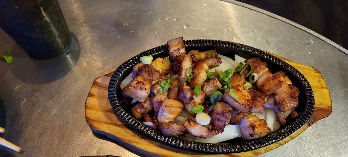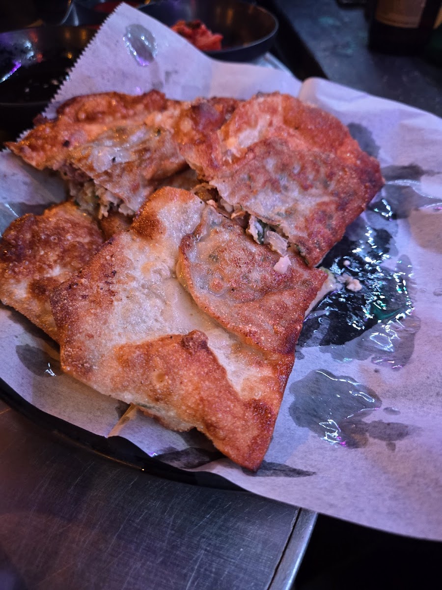 Korean pub vibe. They have a good selection of seafood and meats to grill. We got the seafood combo to grill, came with shrimp, scallops, calms, mussels. It was fresh and delicious. We tried one of their dumplings, I don't know what it's called in English. But not ur ordinary dumplings. It's big pieces and nicely fried. Must try. And we had some type of soup with calms and noodles